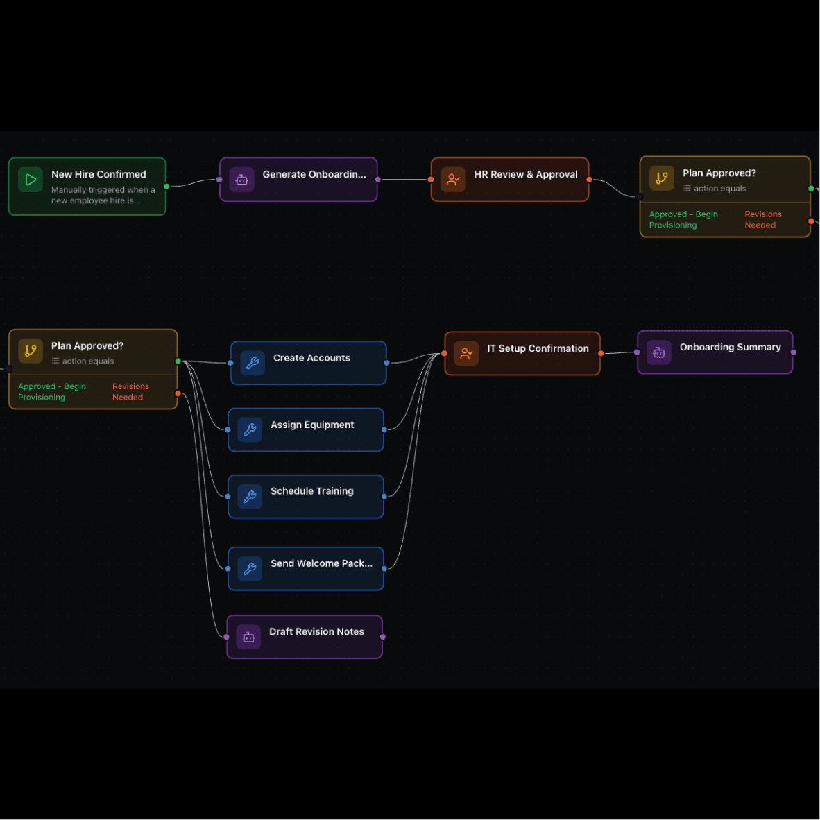 Rivermind orchestrates multi-step workflows across systems, data, and people. Execution logic remains explicit and deterministic, ensuring each step runs in the correct order with clear ownership and accountability throughout the process.
